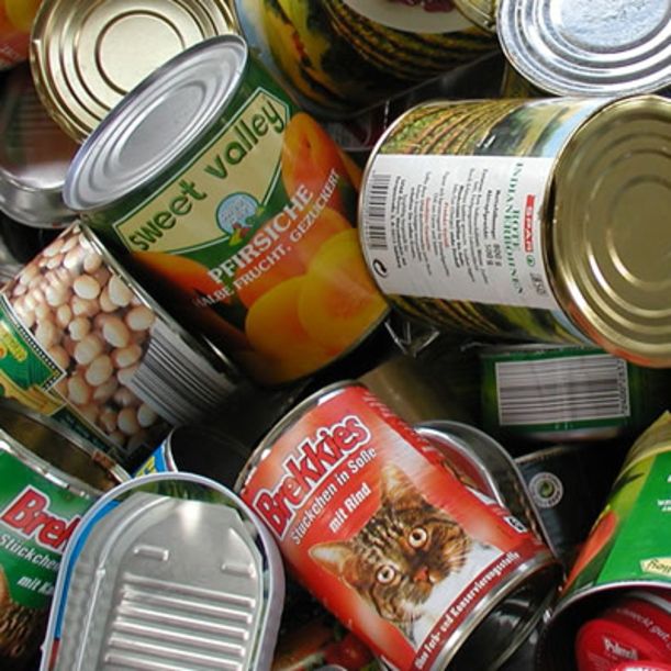 Aludosen , Alufolien , Metallverschlüsse von Gläsern und Flaschen , Getränkedosen , Joghurtbecherdeckel , Konservendosen rein , Kronenkorken , Menüschalen aus Alu , Spraydosen leer , Tiernahrungsdosen sauber , Tuben aus Metall ,