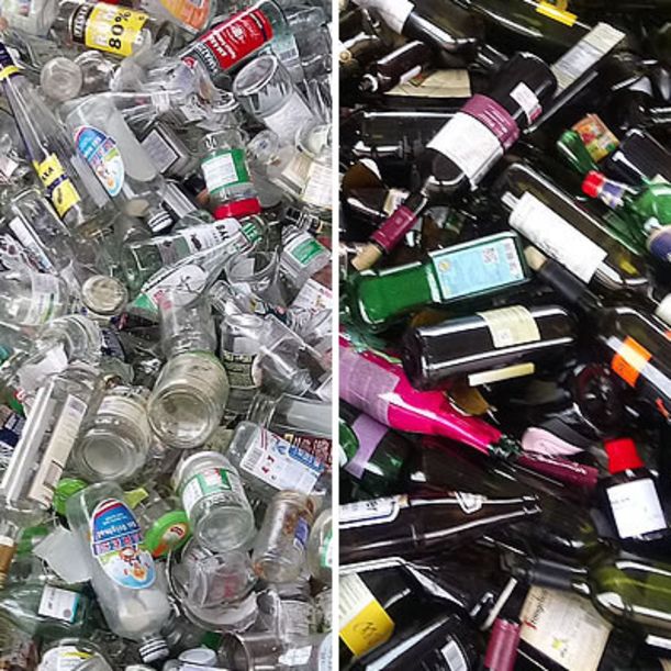 Einwegflaschen ungefärbt , kleine Fläschchen und Flacons für Parfüm und Kosmetik ungefärbt , Kondensmilchflaschen , Limonadenflaschen , ungefärbte Wein- und Spirituosenflaschen , Einsiedegläser (z.B. Rexglas) , Konservengläser ungefärbt (Marmelade, Kindernahrung ...)